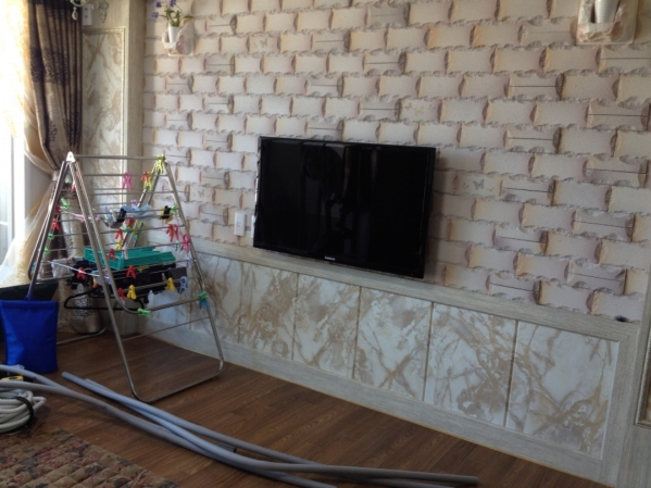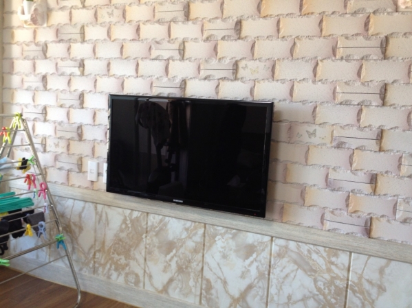 ¾ÆÆ®È¦ Á¤Áß¾Ó¿¡ ¼¾ÅÍÀâ°í ³ôÀÌ´Â 70Ccm¿¡ º®Ã¼¿¡ ±¸¸ÛÀ» ³»°í µÚ¿¡ ÄÜÅ©¸®Æ®º®¿¡ 150mm ¾ÓÄ«Çǽº·Î º®°ÉÀÌÇÁ·¡ÀÓ °íÁ¤ÈÄ 46ÀÎÄ¡ º®°ÉÀÌ TV °ÅÄ¡ ¿Ï·á