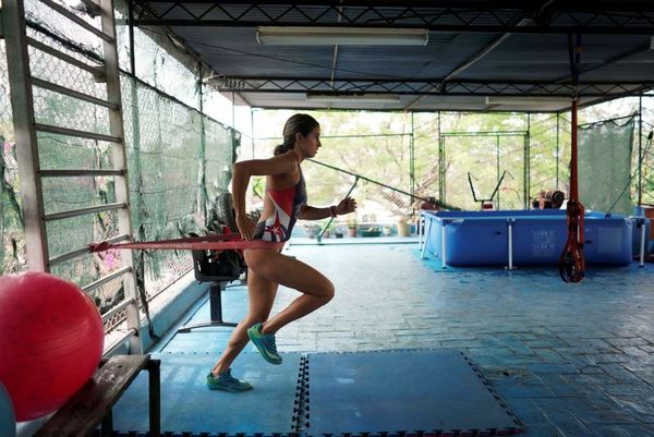 ÀÌ·¯ÇÑ Çö½Ç¿¡µµ ºÒ±¸Çϰí, Äí¹Ù ´ëÇ¥¼±¼öµéÀÇ °³º° ÈÆ·Ã¿¡ ÀÌ¿ëµÇ´Â ÀåºñµéÀº ¸Å¿ì µ¶Æ¯ÇÏ´Ù. Äí¹Ù ´ëÇ¥ÀûÀÎ ¼ö¿µ ¼±¼öÀÎ Æ®¶óÀÌ ¾Ö½½·Ð ¼±¼ö´Â ÀÚ±âÁý ¿Á»ó¿¡ 3m Á¤µµµÇ´Â ¹Ì´Ï ¼ö¿µÀåÀ» ¸¸µé¾î ¸ÅÀÏ ¼ö¿µ ÈÆ·ÃÀ» Çϰí ÀÖ°í, º®¸é¿¡ °í¹« ¹êµå¸¦ ¼³Ä¡ÇÏ¿© ÀúÇ×ÈÆ·Ã°ú ÀÚÀü°Å ¸Ó½ÅÀ» ÀÌ¿ëÇÏ¿© ±âÃÊ Ã¼·ÂÈÆ·ÃÀ» °­È­Çϰí ÀÖ´Â »óȲÀÌ´Ù.