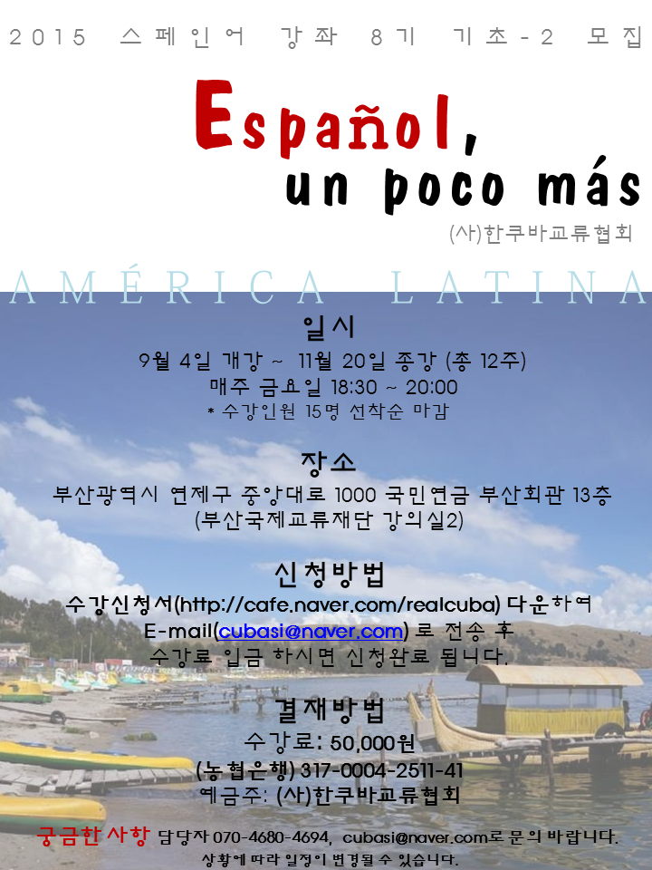 [ºÎ»ê] 9¿ù ½ºÆäÀÎ¾î ±âÃÊ-2 °­Á °³¼³ ¾È³» °ü¸®ÀÚ 2015-07-17 228 1220
