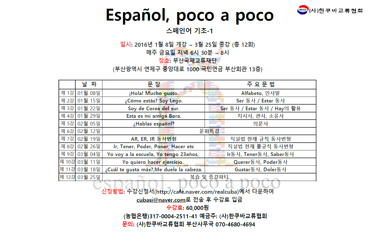 [ºÎ»ê] 2016³â 1¿ù ½ºÆäÀÎ¾î ±âÃÊ-1 °­Á °³¼³¾È³»