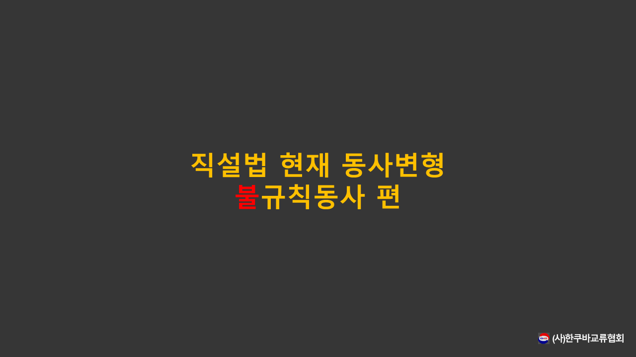 ºÒ±ÔÄ¢µ¿»ç Áß Áß¿äÇÑ µ¿»ç¸¦ Çϳª¾¿ ¹®ÀåÀ¸·Î ¹è¿ì´Â ½Ã°£À» °¡Á®º¸°Ú½À´Ï´Ù . Hasta luego.