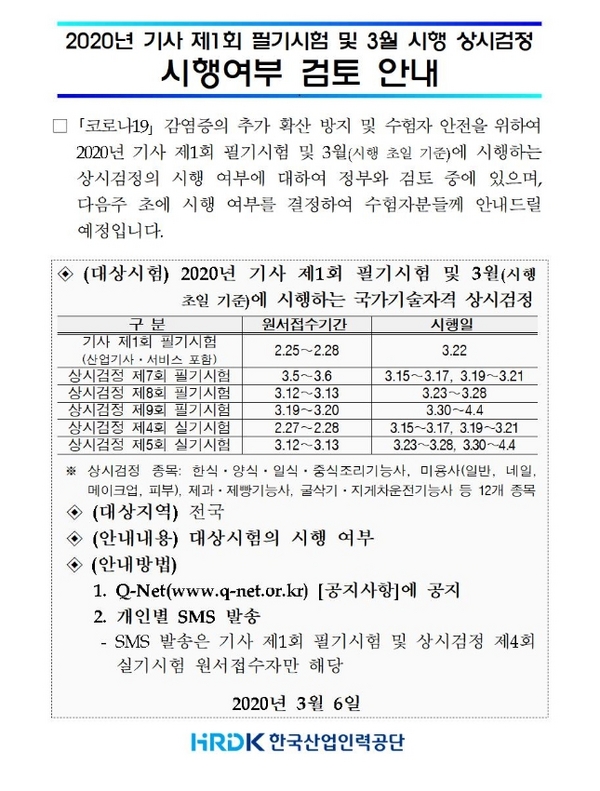 ----------- 2020³â 3¿ù ½ÃÇà »ó½Ã°ËÁ¤ ½ÃÇàÁß´Ü ±â°£¿¬Àå ¾È³» ----------- ¿î¿µÀÚ 2020-03-10 694