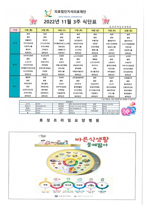 2022³â È¿¼ºÇÁ¶óÀÓ¿ä¾çº´¿ø 11¿ù 3ÁÖ ½Ä´ÜÇ¥¾È³»